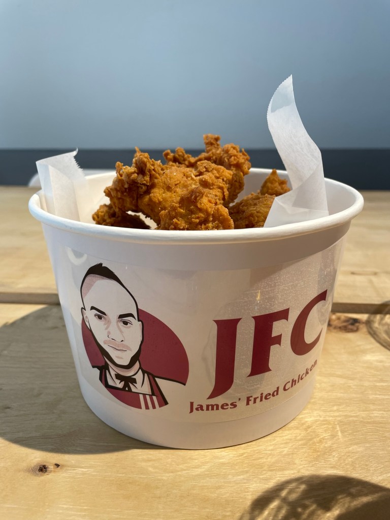 他のメニューでフライドチキンも絶品です。これもとてもクリスピーでカリカリです。少し前の写真ですが自家製?のボックスに入ってて可愛いですよね。