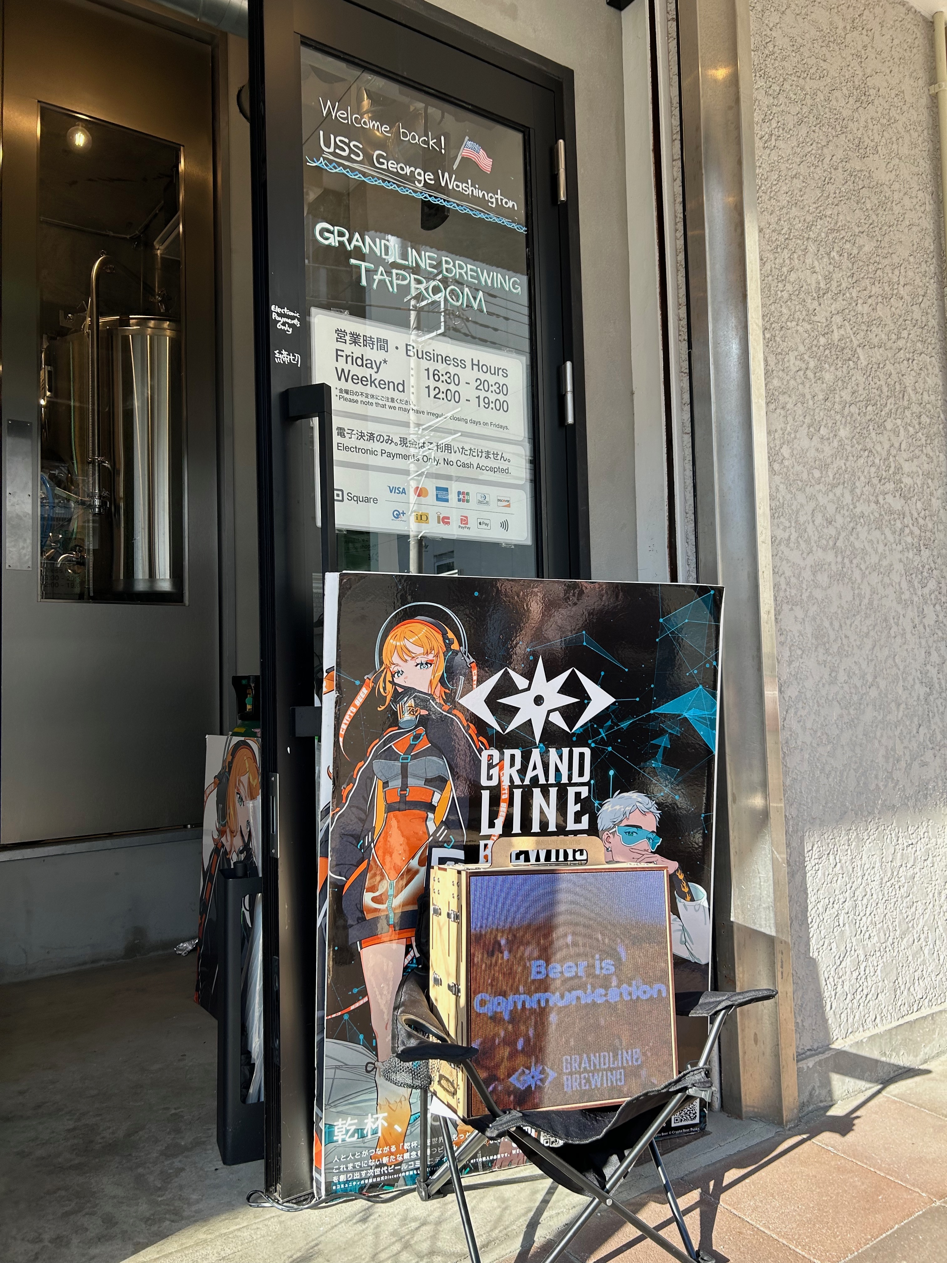 横須賀といえば米軍基地の街ですよね。その米軍基地のメインゲートから歩いて2~3分のところに人知れずあるクラフトビールの醸造所兼TapRooom「GRANDLINE Brewing」に行ってきました。目指して行ったというよりは近くを歩いていて「あれ?こんなところにタップルームがある!」とたまたま見つけてしまいました。表通りから一本裏に入った飲食店が周りない静かなエリアにポツンとあるお店なんです。