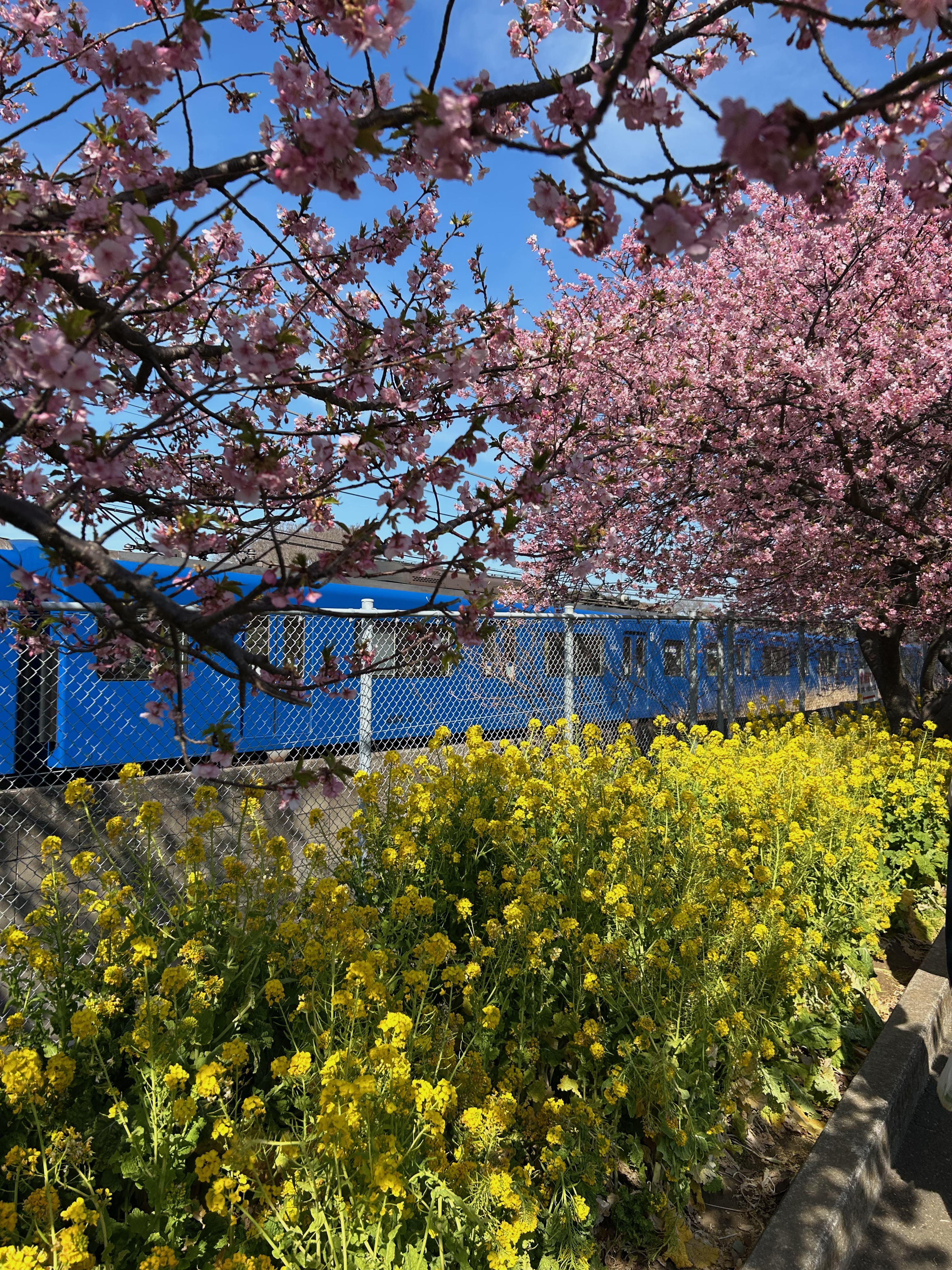春の三浦半島は大変賑やかな季節になってます。まずは2月の河津桜から三浦の春は始まるみたいです。京急「三浦海岸駅」から「三崎口駅」までの線路沿いには有名な桜の並木があります。そこには早咲きの河津桜が約1000本もあり2月から3月は桜と菜の花を両方楽しめる三浦海岸さくらまつりが大変有名です。